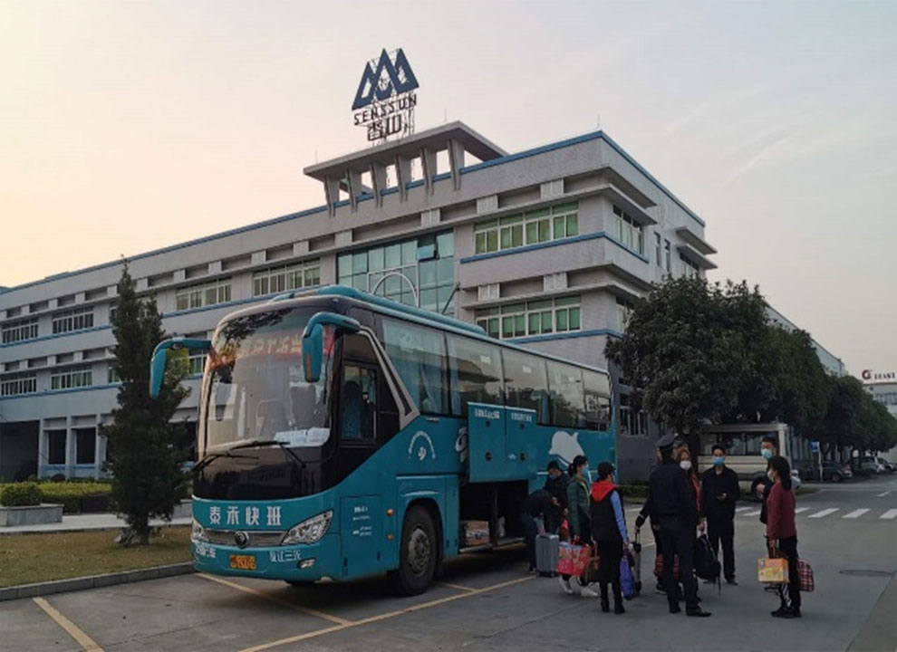 復工第二周,點對點旋即安排專車從廣西多個縣接送員工返崗,半百員工迅速到位。