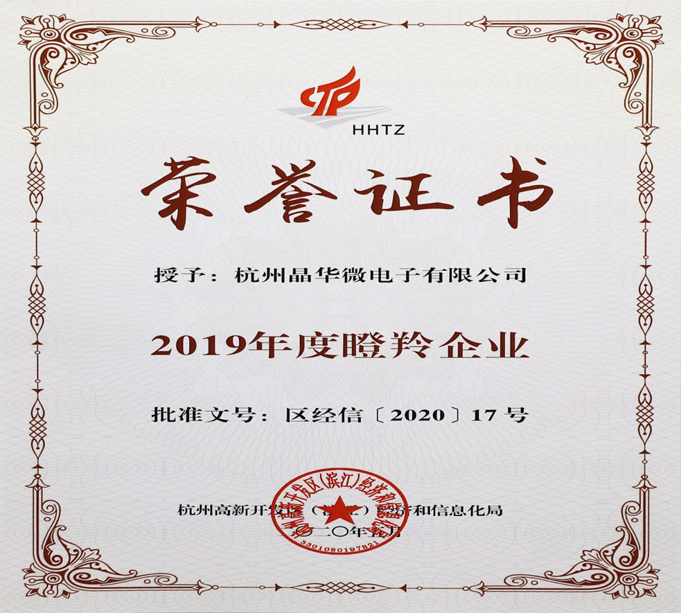 “瞪羚企業”憑借創新活力強、發展速度快成為新技術新經濟的引領者,代表著企業的創新創造能力,備受各地政府關注和認可。近日,2019年度杭州濱江區瞪羚企業名單正式發布,杭州晶華微電子有限公司繼2018年榮獲“瞪羚企業”后,再次榮獲“2019年瞪羚企業”稱號。