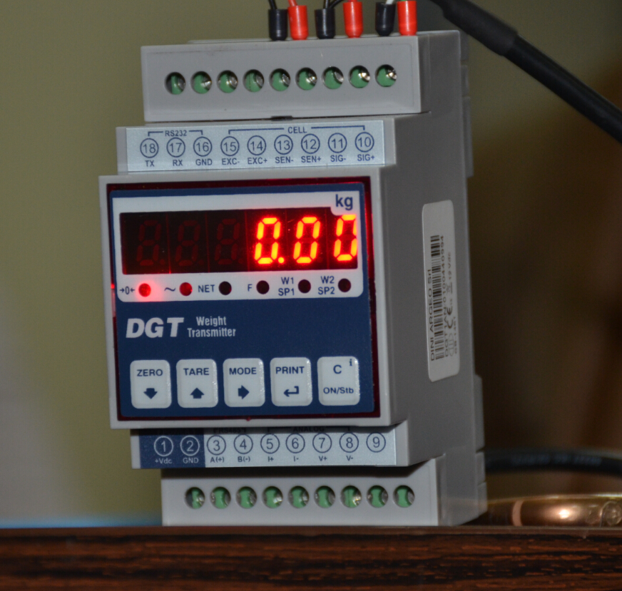 DGT1AN帶有模擬輸出的 DIN bar 重量變送器。5 鍵鍵盤、LED 顯示、實時時鐘、不在場證明。多功能稱重程序。